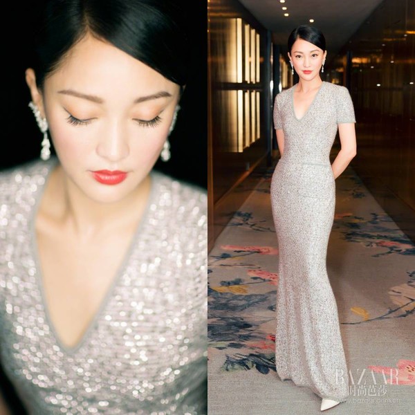 周迅携作品《明月几时有》亮相2017上海电影节红毯,CHANEL礼群勾勒出玲珑曲线,珠宝耳饰更显大方高贵~仙女依旧灵气逼人!