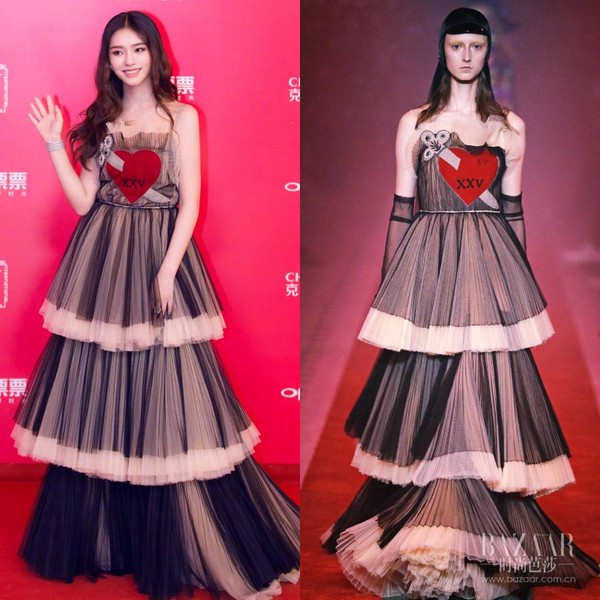 林允将Gucci 最新系列层叠薄纱连衣裙轻松驾驭,尽显天鹅颈~