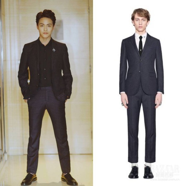 马天宇的格纹西装也来自Gucci ,银色胸针点亮全身造型。