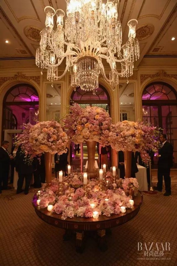 我们先来看看内场,富丽堂皇的顶灯、梦幻的花簇烛台,真是到处都洋溢着浪漫气息啊!