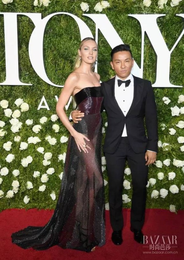 设计师Prabal Gurung和Candice Swanepoel一同现身红毯,名模糖糖身着Prabal Gurung透视礼服,甜美性感。